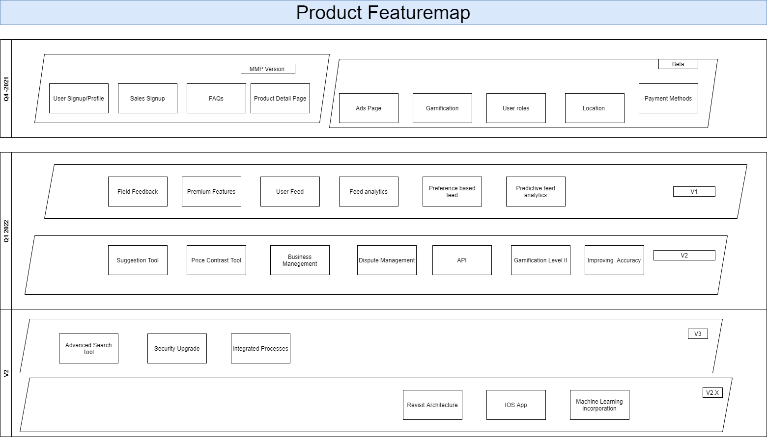 Feature roadmaps are dedicated to tracking the development and release of key product features. They provide precise insight into how a product will evolve, focusing exclusively on value-added initiatives for users. Above is a sample document for an e-commerce company, showcasing these features.
