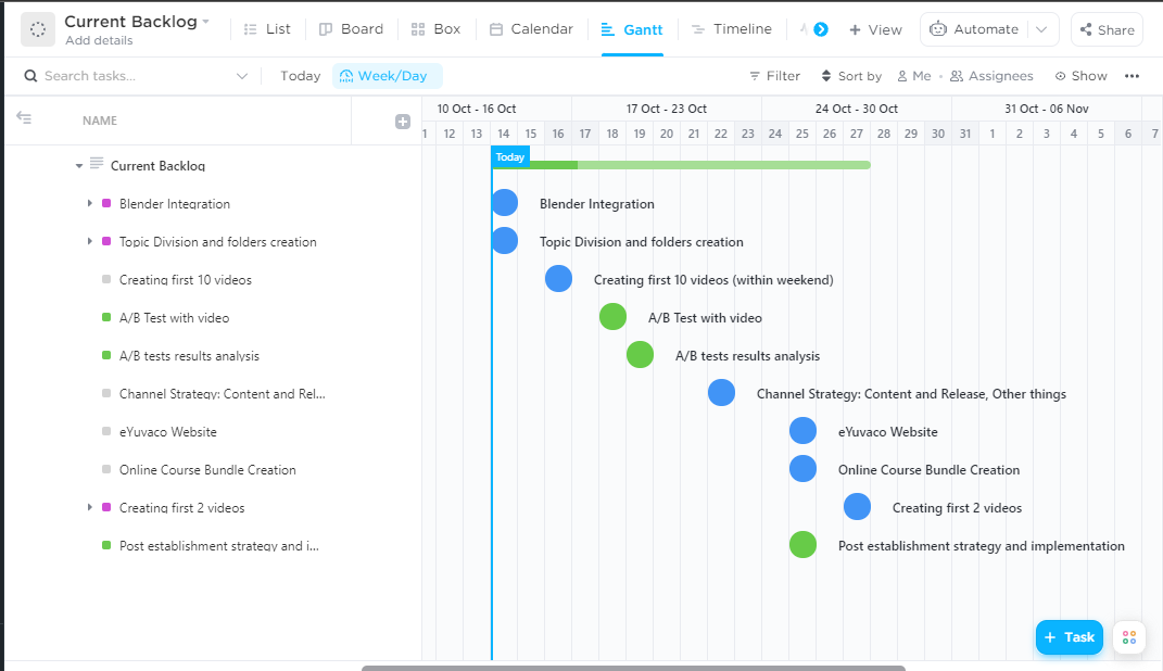 Product roadmaps are a compilation of features, themes, and user stories planned across various sprints with the product team. I've meticulously constructed a coherent backlog where each feature encompasses user stories, tasks, and subtasks. Additionally, I've devised a Gantt chart that serves as both a product roadmap and an activity manager.