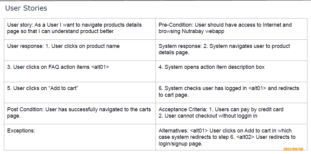 During the Software Development Life Cycle (SDLC), I've adeptly crafted user stories following the agile framework. These user stories serve as essential support for design, development, and research phases, and also serve as valuable documentation for clients.
